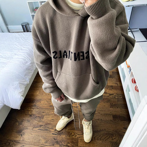 FOG 多層植毛文字ニットカジュアルセーター フード付きスウェットシャツ ハイストリートスタイル カップル向け