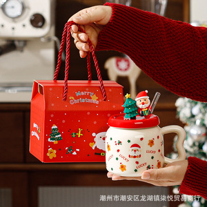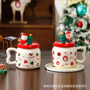 クリエイティブクリスマスプレゼント女子カップセラミックマグカップ蓋付きクリスマスカッププレゼントプレゼントコーヒーカップ