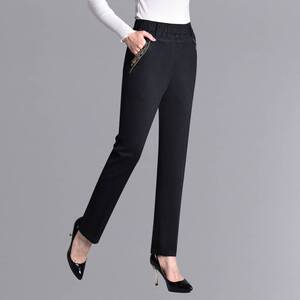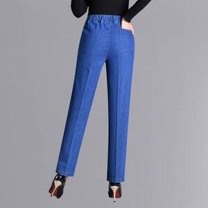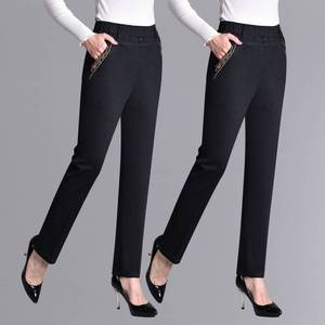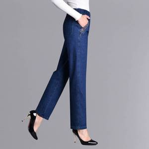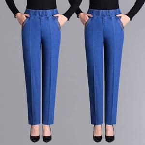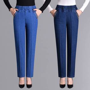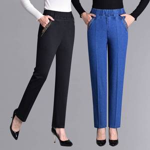 中高年のお母さんのジーパンの女性の春秋の新型のストレートズボンの弾力のズボンの中年の女性のズボンのカジュアルな女性のズボン