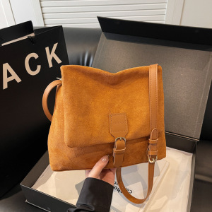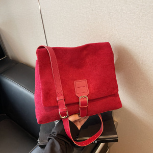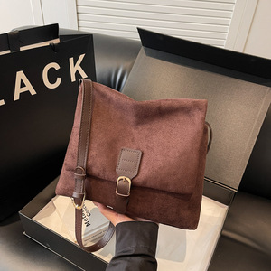 ベルベット艶消し郵便バッグ大容量通勤女性バッグ2025新秋冬質感カジュアルショルダーバッグ