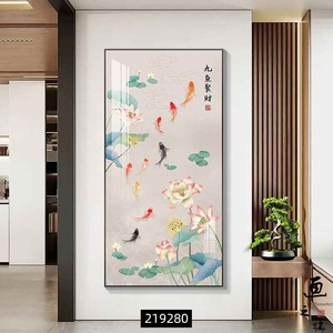 九魚聚財玄関装飾画縦版廊下通路掛け絵入戸門は壁の新しい中国式ハスの花の壁画に向いている