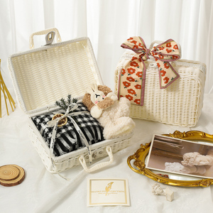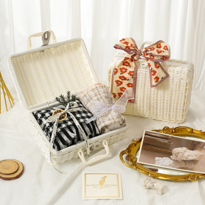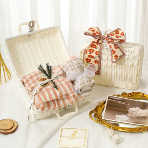 ピンクのスカーフ+花束(竹製ギフトボックス)はグリーティングカードを書くことができます