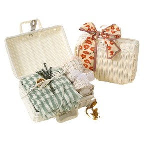 グリーティングカードを書くことができるベージュのスカーフ+花束(竹製ギフトボックス)