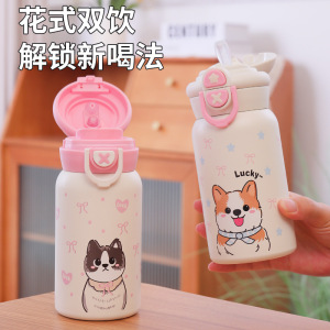 ストロー保温カップ高颜値ステンレスカップ女性児童ストロー携帯学生成人妊婦カップ