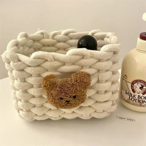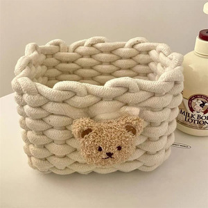 少女心熊綿麻編みデスクトップ収納バスケット家庭用寮かわいい化粧品スナック整理