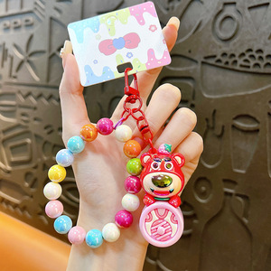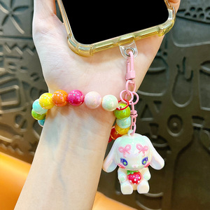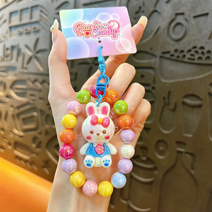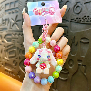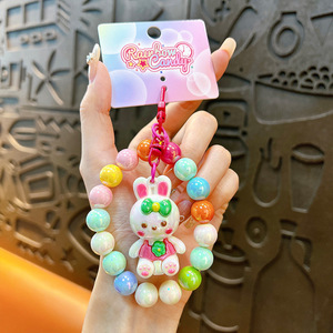 創意のビーズのイチゴのウサギのキーホルダーの女性のかわいいかばんの掛け物の自動車の鍵のチェーンは機の小さい贈り物の卸売りをつかみます