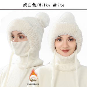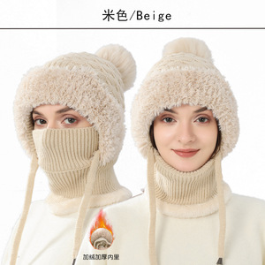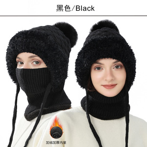 TUMEクロスボーダーニット帽女性冬連体マフラー毛糸帽アウトドア自転車防風ベルベット厚手一体帽