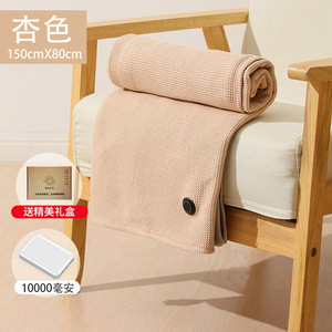 カートン入りウールチェック柄アプリコット + 10000 mAh モバイルバッテリー USB ウォームブランケット [150x80cm]
