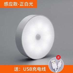 Led人体誘導小夜灯知能無線磁気吸引円形誘導灯戸棚階段通路充電壁灯