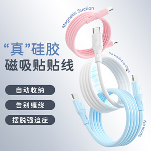 ローマシリコン磁気吸着データケーブル シンプルケーブルオーガナイザー 本物のシリコンケーブル 5A100W急速充電 ライト付き 多色
