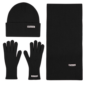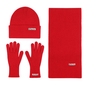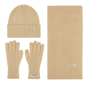 純色ニット帽子3点セット冬保温防寒厚手アウトドア毛糸帽子マフラー手袋セット