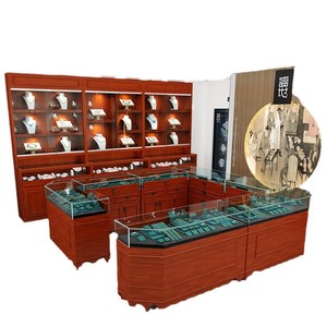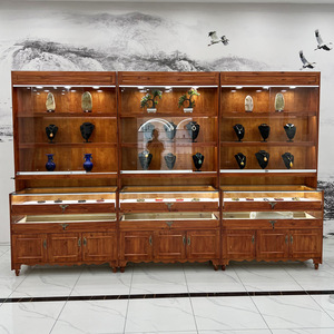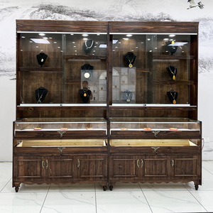レトロ実木ジュエリーショーケースM古遊玉器透明ショーケースアクセサリー蜜ろうアクセサリーガラス中島キャビネット