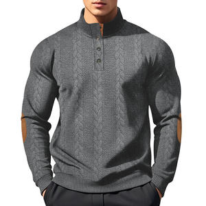 国境を越えたアマゾンのアメリカ春秋重ポンドジャカード男性ボタン立襟パッチヘンリー長袖カジュアルガーディアン男