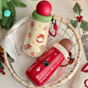 セラミック内胆保温カップ316ストローコップステンレス子供女子高颜値赤色ギフトカップ