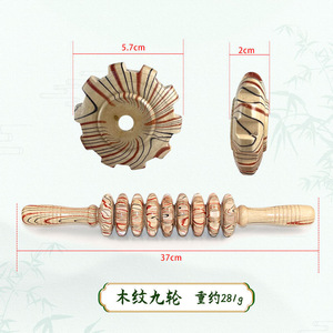 無垢材マッサージスティック 9輪 12輪 木製マッサージローラー マッサージャー 脚 背中 曲がったハンドル 経絡
