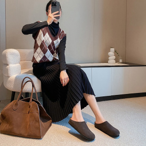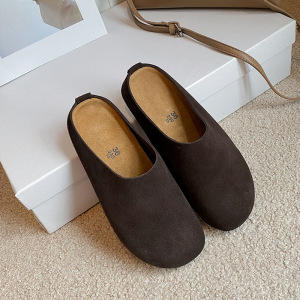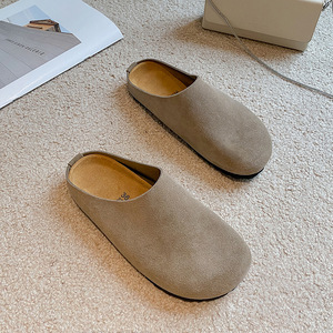 全牛皮勃肯鞋女士包头半拖鞋外穿懒人复古row风软木底真皮博肯鞋