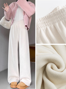 阔腿裤女秋冬加绒加厚2025新款棉裤休闲小个子窄版直筒雪尼尔裤子