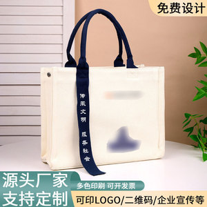 カスタマイズされたロゴリボン付きキャンバストートバッグ、厚みのあるコーティングされた企業用ハイエンドポータブルショッピングバッグ、カスタムメイド