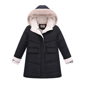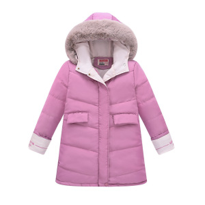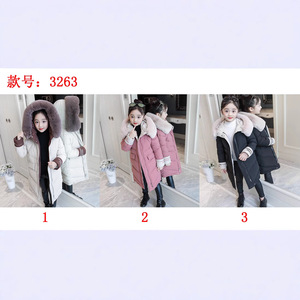 新型の中で子供の女の子の長いタイプの帽子は大きい毛の襟を外すことができてファッションの韓国版の保温の洋の空気の綿服の卸売りを厚くすることができます。
