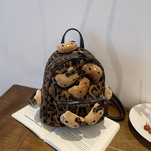 ぬいぐるみヒョウ柄猫ランドセルキティ猫レトロミニ収納バッグ通勤旅行ギャル小さなバックパック