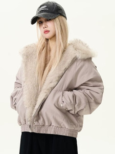 新品アメリカンレトロ座山雕毛襟フード付きコットン服メンズショート丈冬厚手コートins