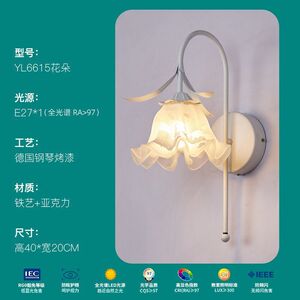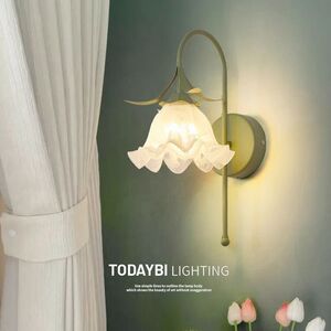 ベッドサイドウォールライトフレンチレトロ田園花バックライトクリーム風少女インスタ寝室部屋led照明器具