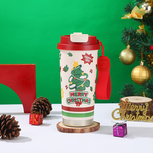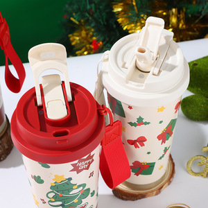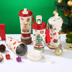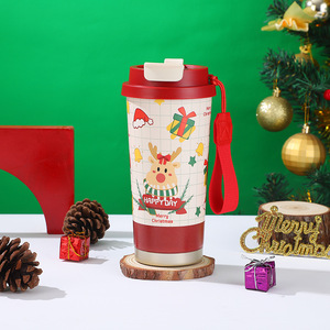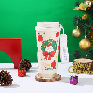クリスマスの爆金高颜値お土産カップ二重316ステンレスコーヒーカップ漫画ヘラジカギフトカップ