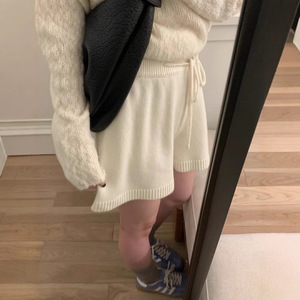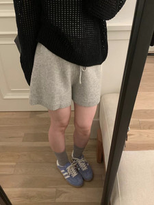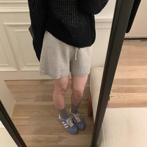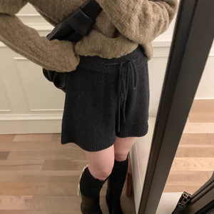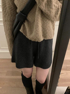 秋の冬の高腰のゆったりした広脚のニットの半ズボンの女性は腰のA字の郭の形の5分のカジュアルなズボンを緩めてブーツのズボンを配合します。