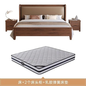 ウォールナットベッド + ベッドサイドテーブル 2 台 + ラテックススプリングマットレス