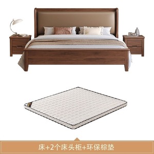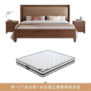 ウォールナットベッド + ベッドサイドテーブル 2 台 + スプリングマットレス
