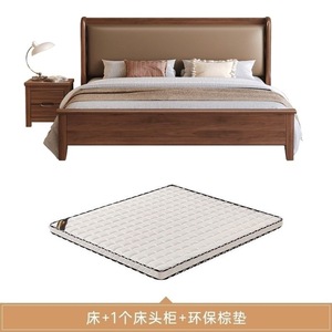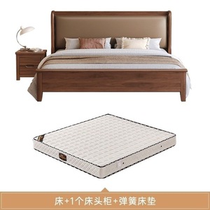 ウォールナットベッド + ベッドサイドテーブル 1 台 + スプリングマットレス