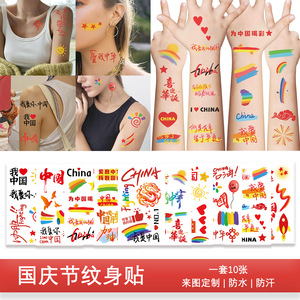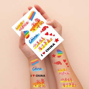 新しい国慶節の紋章はお祝いの赤い色を貼っています。私は中国の学校慶節運動会を愛しています。