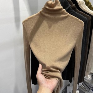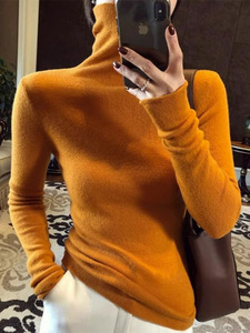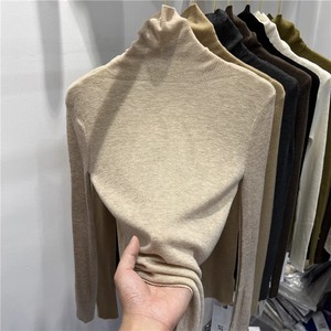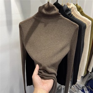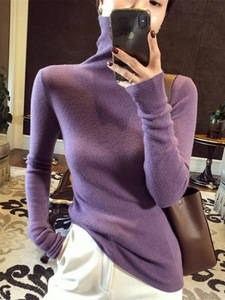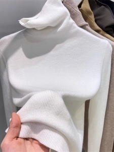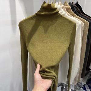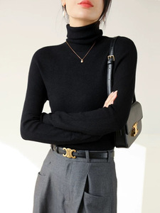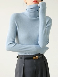 厚手のシームレスな高襟のウールのニットの底のシャツの女性の秋冬の修身の中に高級感の積層襟の青いセーターを掛けます。