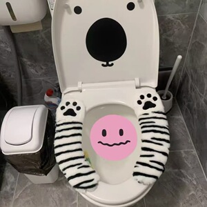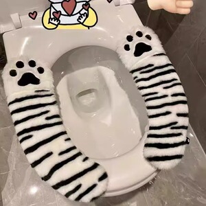 日系かわいい猫の爪トイレマット家庭用粘着式便器座布団リング冬のぬいぐるみトイレ座布団座布団セット