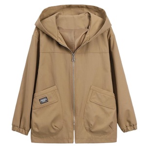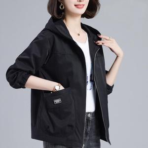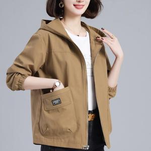 2025年春秋新作 レディース カジュアル ゆったり フード付きショートジャケット ママ向け おしゃれ 若見え 韓国風ジャケット