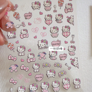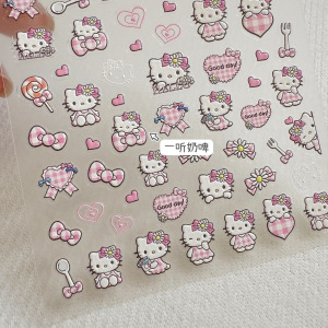ピンクスカートハローキティネイルステッカーins乙女心5dレリーフ立体ハローキティ水カップカメラdiyステッカー