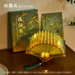 早泡国風扇形書灯瑠璃珠灯シリーズ古風文芸書道名画DIY手作りデスクトップ置物