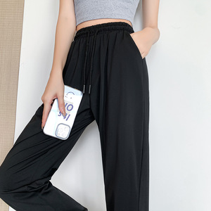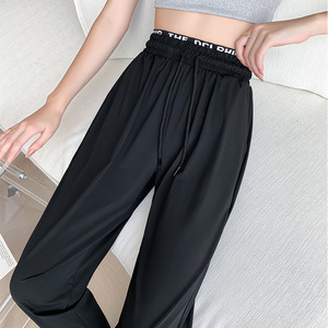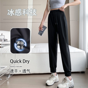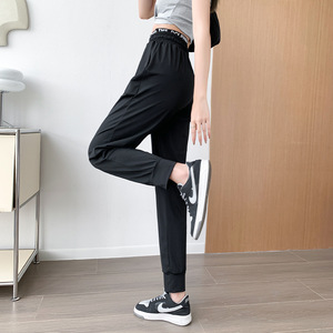 日焼け止め速乾スポーツパンツ レディース 夏 薄手 ハイウエスト ゆったり ドローストリング ジョガーパンツ フィットネスパンツ スポーツパンツ 脚長効果