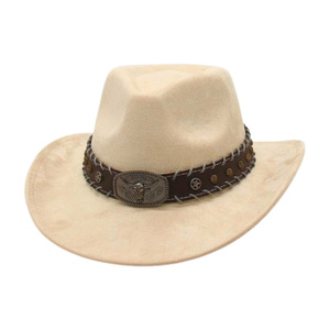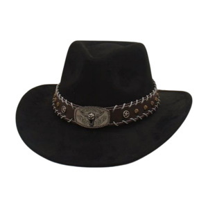 新型高級感民族風牛頭騎馬ジャズ帽クロスボーダー直売卸売りスエード桃心カウボーイ帽子