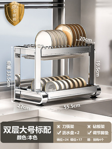 【304ステンレス】二層構造|55cmメインラック+包丁・箸ラック+まな板ラック★
