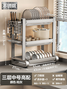 ステンレス【ガングレー】三層|43cmメインラック+包丁・箸ラック+まな板ラック★