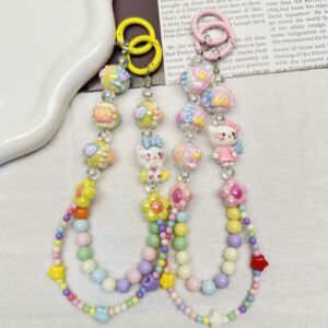 Insドーパミン手描き数珠長ストラップ掛けサンリオケイティキーホルダーkt猫バッグストラップ