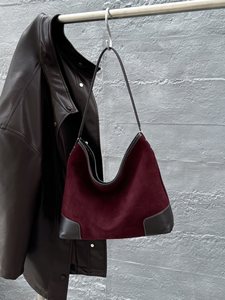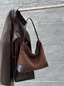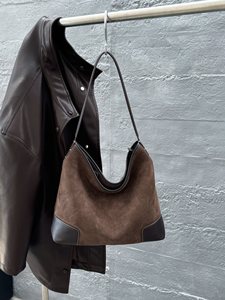秋冬新款绒面牛皮女包大容量休闲托特包时尚百搭斜跨真皮腋下包女