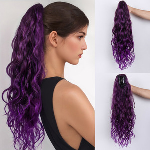 メーカーの卸売りかつらの女性のポニーテールのトウモロコシのパーマの多色は高いポニーテールのふわふわしている長い巻き髪のポニーテールを挟みます。
