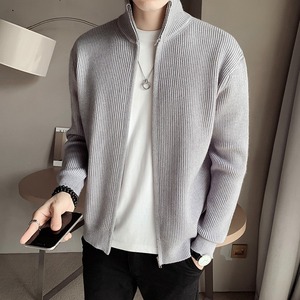 秋冬の新型の軽くて豪華な立襟のメリヤスのカーディガンのコートの男性のタイプは簡単で百合のビジネス風のファスナーの純色のセーターの男性に似合います。