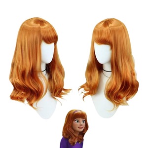 スクービー犬cosかつらダフニキャスティングオレンジロングカールBOBOかつら女コスプレオレンジ