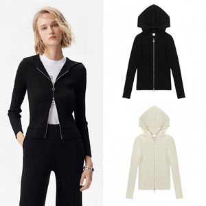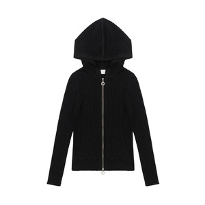 HOUSE 24秋冬 双拉链 绵羊毛针织坑条金银丝黑白两色连帽开衫外套