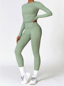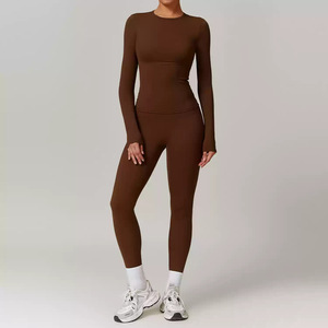 セット秋冬磨毛長袖長ズボンヨガ服女性tシャツ弾力ガードル