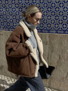 欧米向け越境貿易婦人服 秋冬新作 おしゃれ 厚手 暖かい ラムウール ゆったり ラペルジャケット レディース
