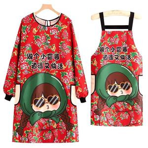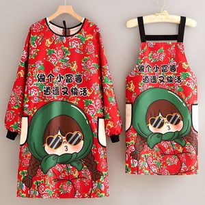 防水長袖環境保護エプロンキッチン家庭用料理カバー飲食専用防汚耐汚れファッション作業服女性